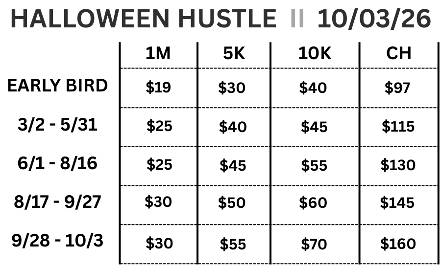 For past results of the Halloween Hustle, we will post a link here soon for you to see.